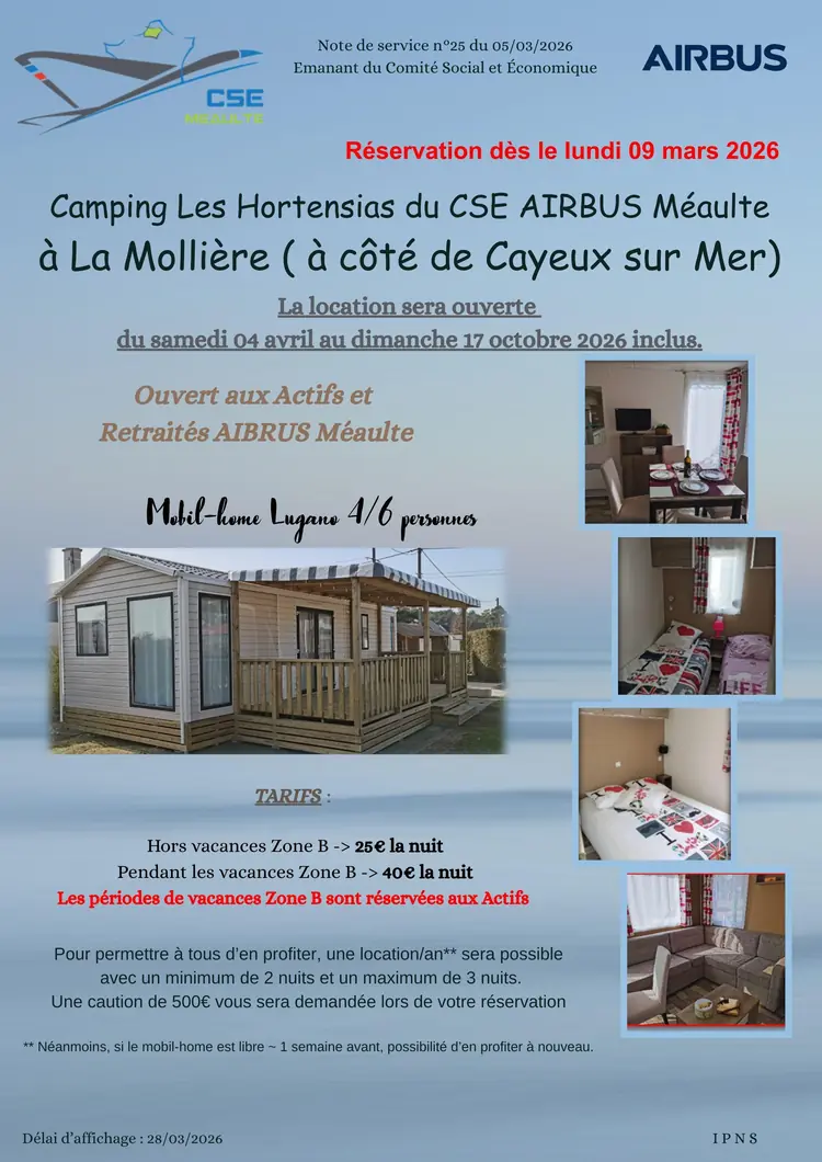 Réservation ouverte pour le mobil home à la Mollière