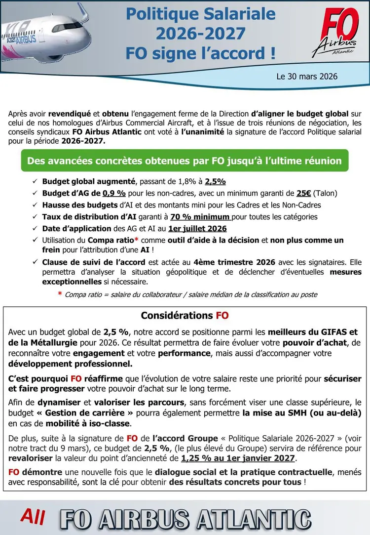 FO signe l'accord politique salariale 2026/2027