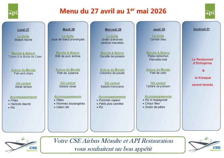 Menu du 20 au 24 avril 2026