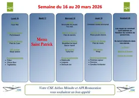 Menu du 16 au 20 mars 2026