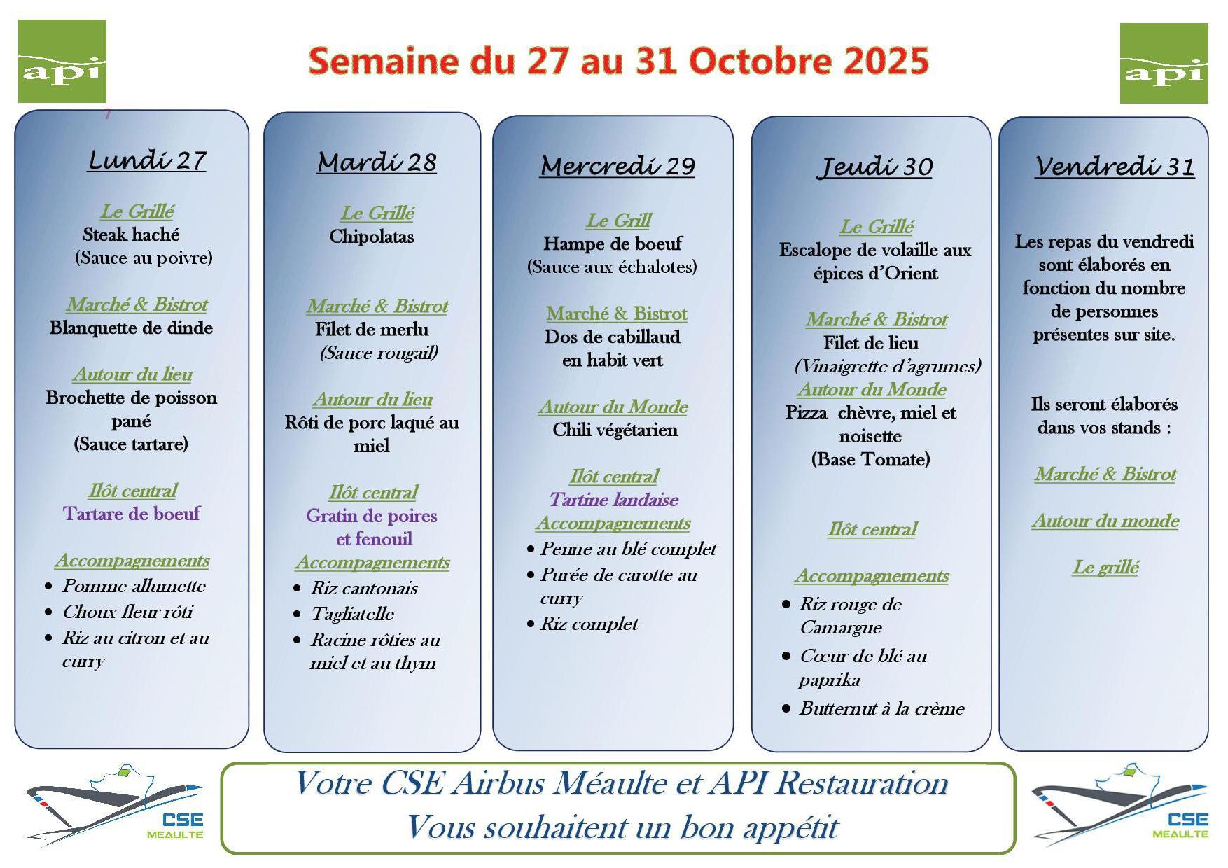 Menu du 27 au 31 octobre 2025