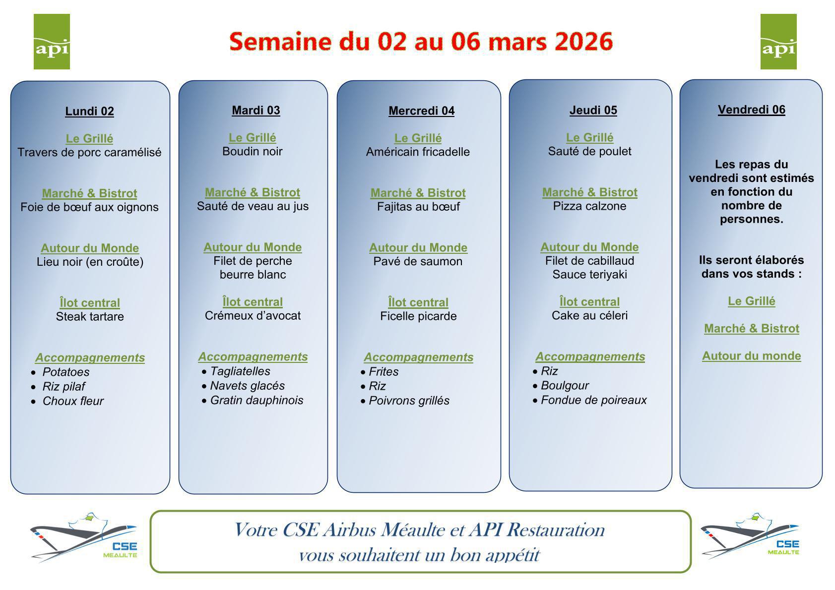 Menu du 02 au 06 mars 2026